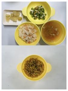 1月8.22日(木曜日)の給食とおやつです☺︎ ❇︎ 献立 ❇︎ ~ 給食 ~ ⚪︎そぼろごはん ⚪︎石狩汁 ⚪︎ほうれん草の胡麻和え ⚪︎もも ~ おやつ ~ ⚪︎おいもプリン 2026年1月8日 ※本日のおやつ 変更 【フルーツポンチ】⇨【七草粥】 1月7.21日(水曜日)の給食とおやつです☺︎ ❇︎ 献立 ❇︎ ~ 給食 ~ ⚪︎ご飯 ⚪︎鮭の照り焼き ⚪︎豆腐と小松菜のとろみ煮 ⚪︎味噌汁 ⚪︎バナナ ~ おやつ ~ ⚪︎七草粥 2026年1月7日 1月6.20日(火曜日)の給食とおやつです☺︎ ❇︎ 献立 ❇︎ ~ 給食 ~ ⚪︎ポークカレーライス ⚪︎もやしとツナのナムル ⚪︎わかめスープ ⚪︎みかん ~ おやつ ~ ⚪︎ピザトースト 2026年1月6日